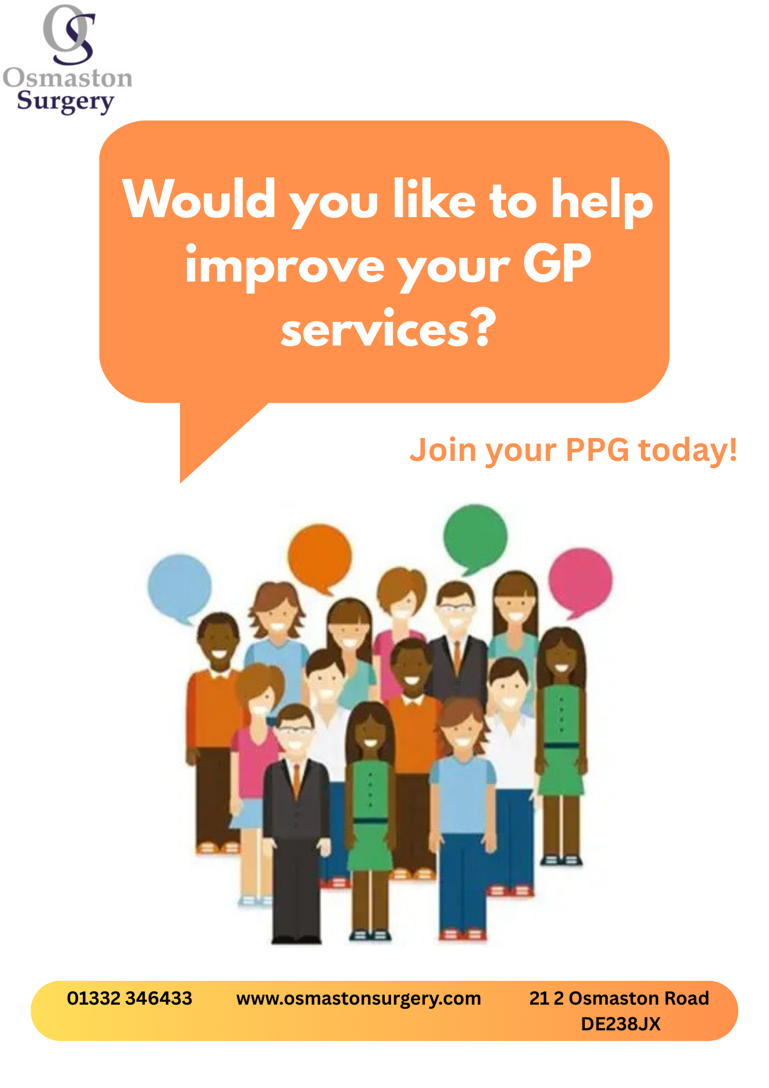 - JOIN our New Patient participation Group !! Drop in, come along and meet some of the team. We are here to Listen and work with you to improve the services we for our patients.